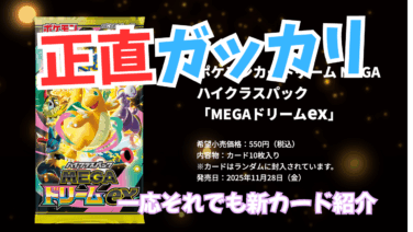 MEGAドリーム、待望のハイクラスパックですが、正直かなりガッカリでした。期待外れ感すごいですけど、使えるカードは多少あるので、紹介していこうと思います。